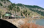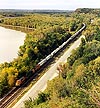 This north bound train is passing the Mississippi Palisades State Park, just north of Savana, Illinois in the fall of 1999.