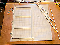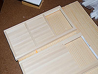 | | I then printed the drawings in the final scale of the building (1:29), and used those plans as templates to construct the windows using plastic strips.