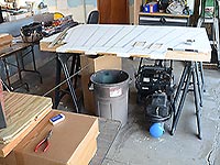 | | Ron asked that the structure be built in order to stay outside all year around (in northern Illinois). All of the structures I have built using Precision Board I bring in at night, because the foam product is somewhat fragile, plus with the amount of work that I put into them, I don't want a bird "tagging" them. In this photo I am laying out the framing marks on a large wood deck, that was built for the purpose of this building.