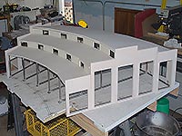 | | After cutting all of the wall and roof panels, I dry fitted them to the frame. |
