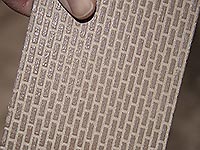 | | Once the forms were removed, I laid the panel track in, and then filled around the track with grout, I taped a piece of wood to the inside edge of the rail, that would be removed later, providing a space for the flange of the wheels. |