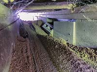| | I had to cut open the stream above, dig down and cut open the top of the tunnel (plywood) to make the repair. This repair lasted only a week, and we sustained damage again, thus stopping us from operating. Time for dynamite on a motion sensor!