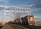 This westbound at Frost, just outside of Victorville, California has trackage rights on the ATSF. The track in the forground crosses over the other track just to the right of this image.