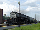 The UP 3985 ran as an excursion on 6-15-02 from West Chicago IL to Milwaukee, WI. The train is seen here eastbound through Glen Ellyn, IL.
